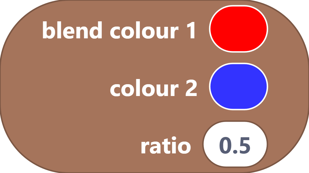 <table><thead><tr><th width="384" align="center">Input</th><th align="center">Function</th><th align="center">Output</th></tr></thead><tbody><tr><td align="center"><img src="https://2077548579-files.gitbook.io/~/files/v0/b/gitbook-x-prod.appspot.com/o/spaces%2F3xg7dEw96L10OHOz0yDz%2Fuploads%2FLW0iX8kv9IZ35y2I46r5%2Fscreenshot%20(50).png?alt=media&#x26;token=62970ba7-2e6c-44d4-aca3-003b137ca1bb" alt="" data-size="line"></td><td align="center">Basic color picker</td><td align="center">#ff0000</td></tr><tr><td align="center"><img src="https://2077548579-files.gitbook.io/~/files/v0/b/gitbook-x-prod.appspot.com/o/spaces%2F3xg7dEw96L10OHOz0yDz%2Fuploads%2FuD4wmxnmDNPv5iHBjCSa%2Fscreenshot%20(51).png?alt=media&#x26;token=be8d8622-b8f6-4aae-bf92-c33064d6f1ef" alt="" data-size="original"></td><td align="center">Generate a random color each time</td><td align="center">(#000000 - #ffffff)</td></tr><tr><td align="center"><img src="https://2077548579-files.gitbook.io/~/files/v0/b/gitbook-x-prod.appspot.com/o/spaces%2F3xg7dEw96L10OHOz0yDz%2Fuploads%2FUYL0gPIQD9AqbbleLDWU%2Fscreenshot%20(52).png?alt=media&#x26;token=de257daa-3bbf-4a48-8afe-d681994f6e67" alt="" data-size="original"></td><td align="center">Input a custom <a href="https://g.co/kgs/7MwFUq">HEX</a> color</td><td align="center">#4287f5</td></tr><tr><td align="center"><img src="https://2077548579-files.gitbook.io/~/files/v0/b/gitbook-x-prod.appspot.com/o/spaces%2F3xg7dEw96L10OHOz0yDz%2Fuploads%2FFEh4S4WBvO6hQxYMUdFA%2Fscreenshot%20(53).png?alt=media&#x26;token=ed38fa98-7bf9-458e-9007-ec2123bf4a58" alt="" data-size="original"></td><td align="center">Make a custom Color Using RGB (Red, Green, Blue)</td><td align="center">RGB (255, 127.5, 0)</td></tr><tr><td align="center"><img src="https://2077548579-files.gitbook.io/~/files/v0/b/gitbook-x-prod.appspot.com/o/spaces%2F3xg7dEw96L10OHOz0yDz%2Fuploads%2FBDSjFF7dnA8yR8cceTt7%2Fscreenshot%20(55).png?alt=media&#x26;token=e6b00ed8-c0cf-46b6-81c2-9d245a895ec8" alt="" data-size="original"></td><td align="center">Blend 2 colors, that mean their two Hex codes will be combined into one new color</td><td align="center">#991a80</td></tr></tbody></table>