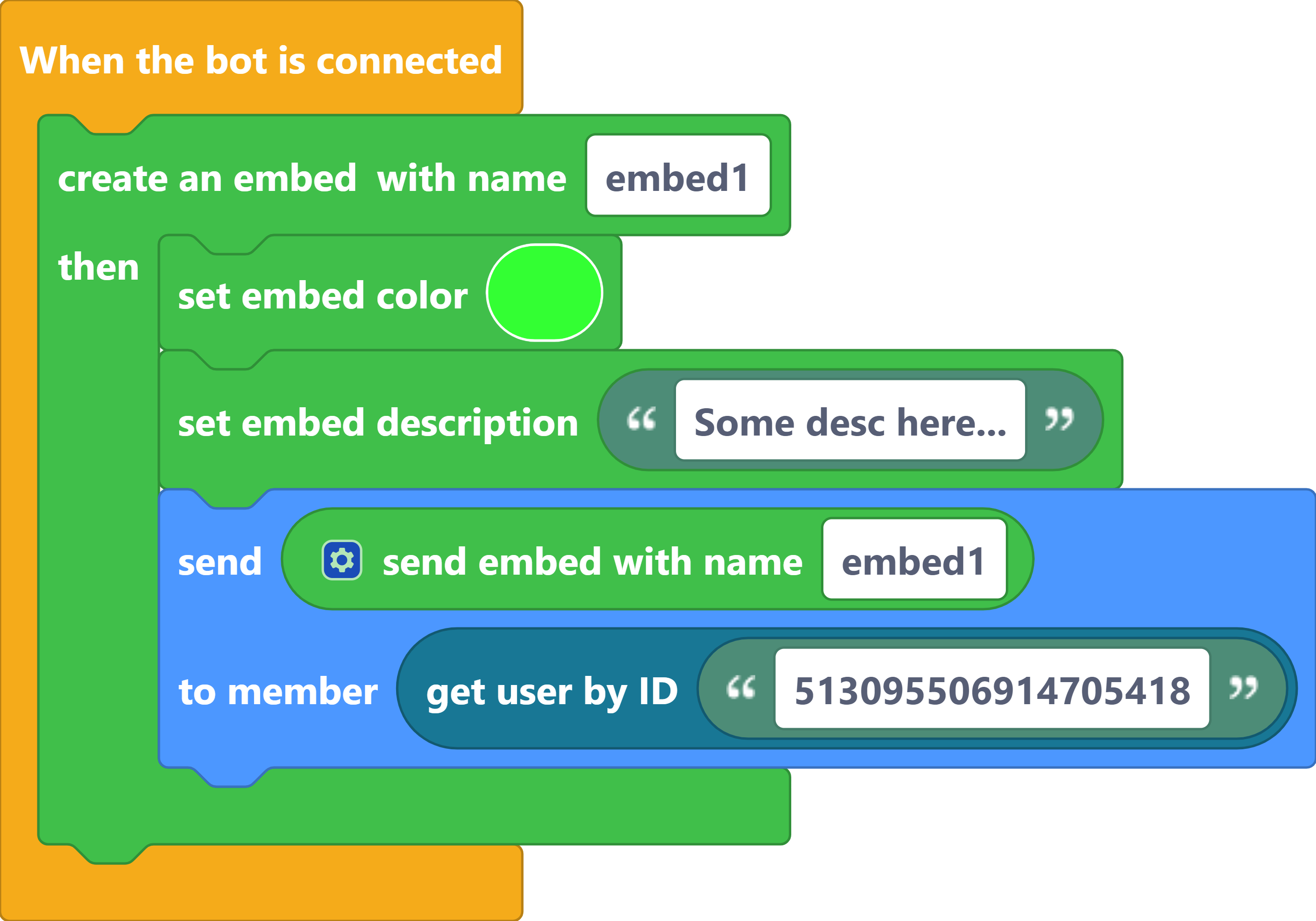 <figure><img src="https://2077548579-files.gitbook.io/~/files/v0/b/gitbook-x-prod.appspot.com/o/spaces%2F3xg7dEw96L10OHOz0yDz%2Fuploads%2FPgY83dklFEH7U9kCOFtN%2Fscreenshot%20(56).png?alt=media&#x26;token=02d7b9cb-e8df-4469-8a2f-c52bc848bb2c" alt=""><figcaption><p>Make an embed, add a color, add a description, send the embed to user</p></figcaption></figure>