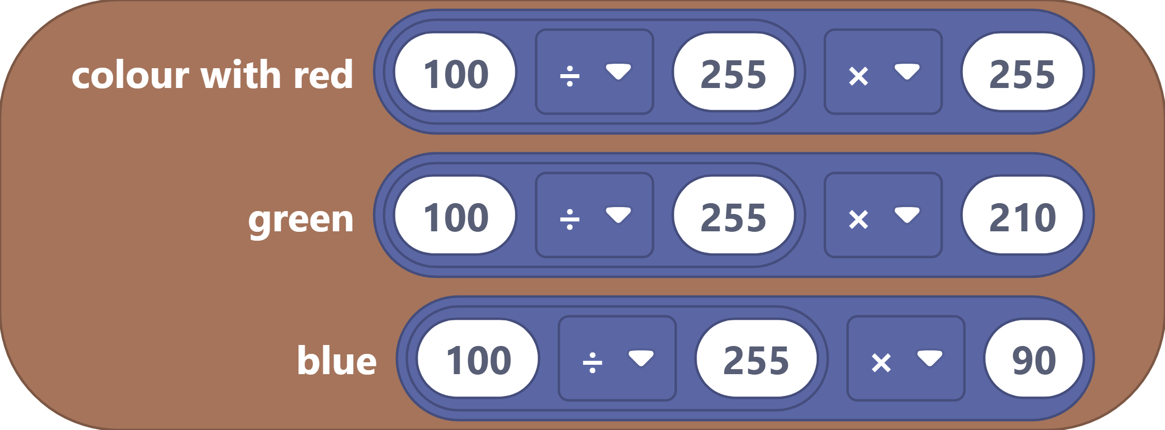 So you divide 100 by 255 and multiply it by whatever RGB value you wish